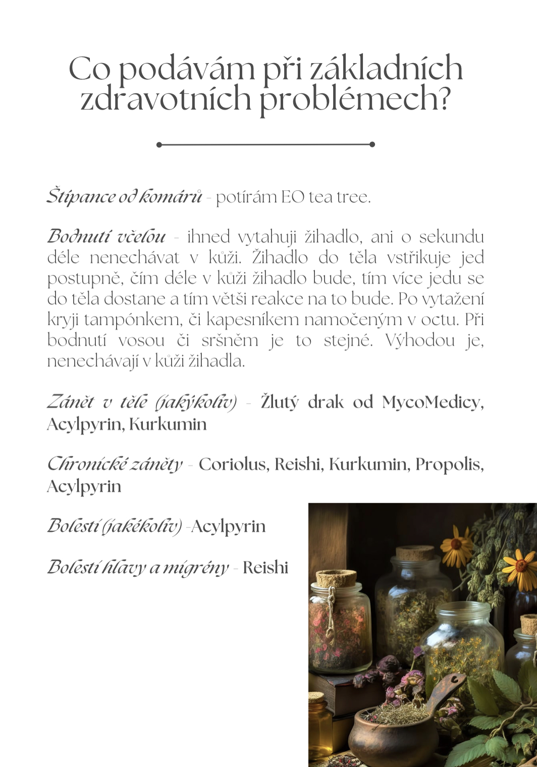 - Tuto mou lékárničku můžete využít jak preventivně, tak při akutním onemocnění.